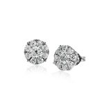 These elegant white gold stud earrings are a classic choice with a grouping of round diamonds encircling round center diamonds.